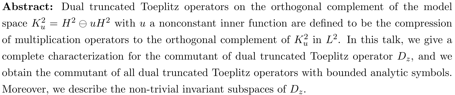 简介:丁宣浩,重庆工商大学教授,博士生导师,主要从事函数空间上的算子理论和算子代数的研究。