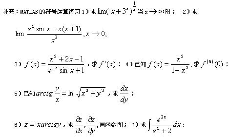 注意强调 MATLAB 中指数函数、对数函数、三角函数表达方式,与传统数学函数表达不同;
