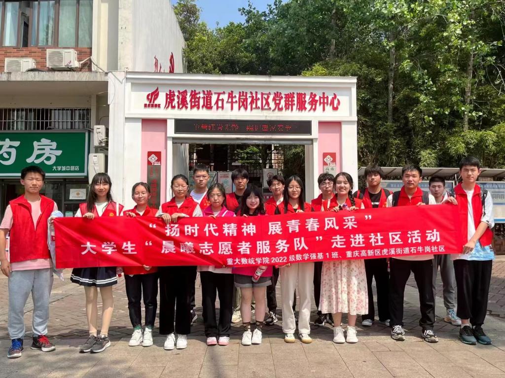 2022级强基1班“晨曦志愿者服务队”走进重庆高新区虎溪街道石牛岗社区,开展了“扬时代精神,展青春风采”志愿者服务活动,并建立了长期合作机制。