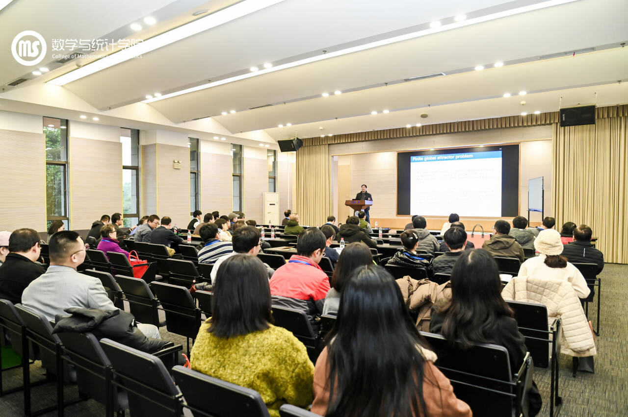 复旦大学的沈维孝院士做了题为《非对称单峰区间映射的游荡区间》的报告。