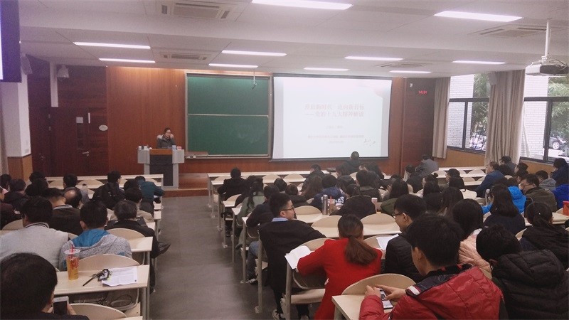 2017年11月29日下午2点,学校十九大精神宣讲团在第一教学楼D1125展开以“开启新时代 迈向新目标”为主题的十九大精神解读活动,性爱影片