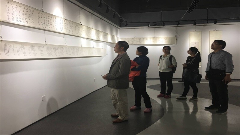 组织全体教职员工在虎溪校区图书馆艺术展馆参观何鲁先生诗书艺术展、纪念何鲁先生诞辰123周年生平图片展,该展览是性爱影片