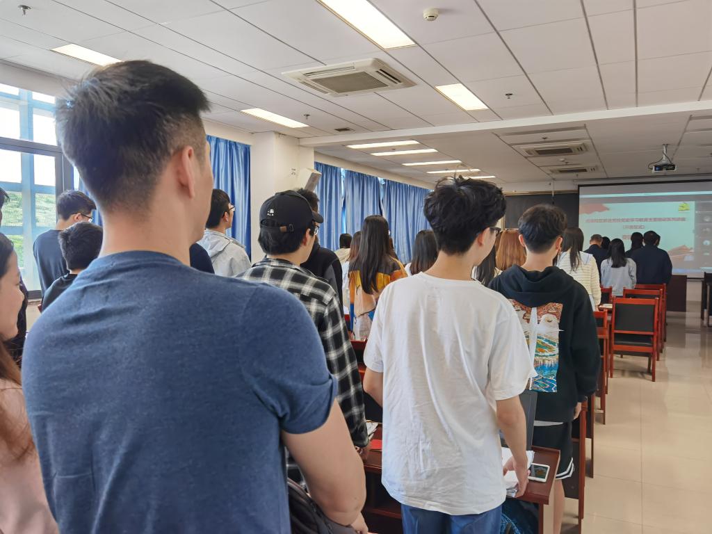 弘深学院院长唐胜利同志以及药学院党委书记凌明同志。随后全体党员同志起立,奏唱《国际歌》。之后,凌明同志代表虎溪校区联合党校进行了开班仪式的讲话,讲话中凌明同志对到场学习的党员同志提出真切期望,希望本次培训班学习仪式能够使各位党员同志拓展视野、开放思维并在之后的党建、科研、学习、工作等各个方面发扬优秀革命精神,为学校建设、社会进步、国家发展舔砖加瓦!凌明同志的讲话获得了在场师生的热烈鼓掌。随后,药学院党委硕士支部组织委员钟书婷同学作为学员代表上台发言,钟书婷同学不仅回应了凌明书记对于党员同志们的期望,并且明确了自我不断发展与进步的目标,为在座的学生党员树立了良好的榜样。