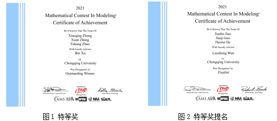 我校学生在2021年美国大学生数学建模竞赛中荣获特等奖